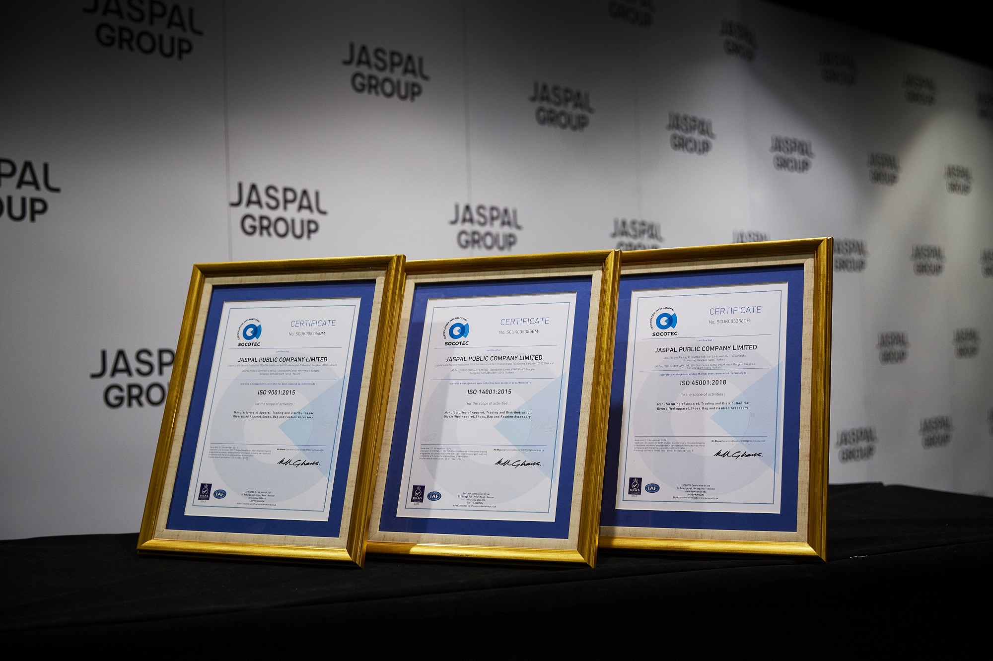 ยัสปาล กรุ๊ป หรือ บริษัท ยัสปาล จำกัด (มหาชน) โดย วิสิทธิ์ สิงห์สัจจเทศ (ที่ 2 จากซ้าย) ประธานคณะกรรมการบริหาร, จรัญ สิงห์สัจจเทศ (ที่ 3 จากซ้าย)  ประธานเจ้าหน้าที่บริหาร และ วิเศษ สิงห์สัจจเทศ  (ที่ 1 จากซ้าย) รองประธานเจ้าหน้าที่บริหาร ร่วมสานต่อความสำเร็จด้านมาตรฐานสากลอย่างต่อเนื่อง รับมอบใบประกาศนียบัตรรับรองมาตรฐานสากล International Organization for Standardization หรือ ISO ซึ่งเป็นมาตรฐานการวัดคุณภาพองค์กรในด้านต่างๆ จากบริษัท โซโคเทค เซอร์ติฟิเคชั่น (ประเทศไทย) จำกัด โดย ยัสปาล กรุ๊ป ได้รับมอบการต่ออายุมาตรฐานสากล 3 มาตรฐาน ได้แก่ ISO 9001 มาตรฐานระบบบริหารงานคุณภาพ, ISO 14001 มาตรฐานระบบการจัดการสิ่งแวดล้อม และ ISO 45001 มาตรฐานระบบการจัดการอาชีวอนามัยและความปลอดภัย