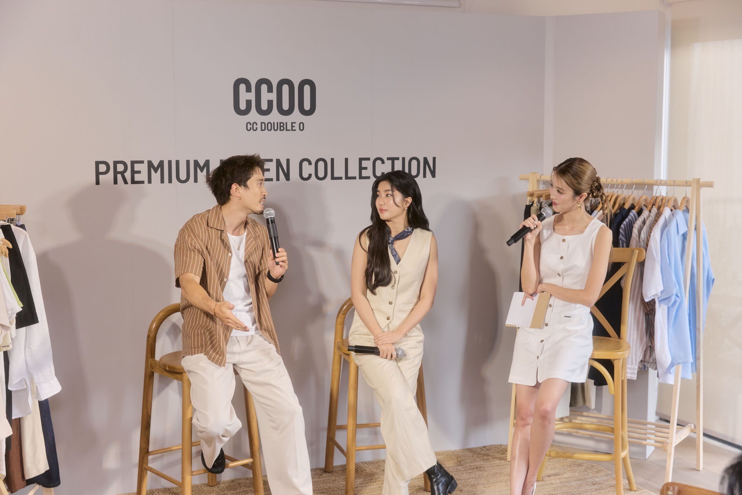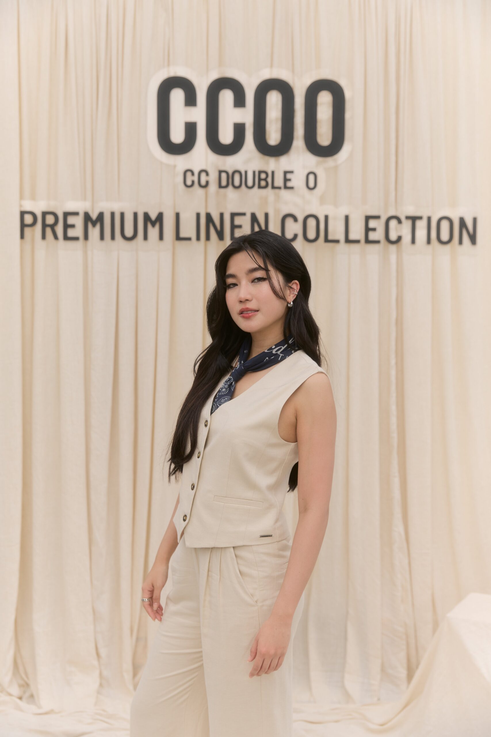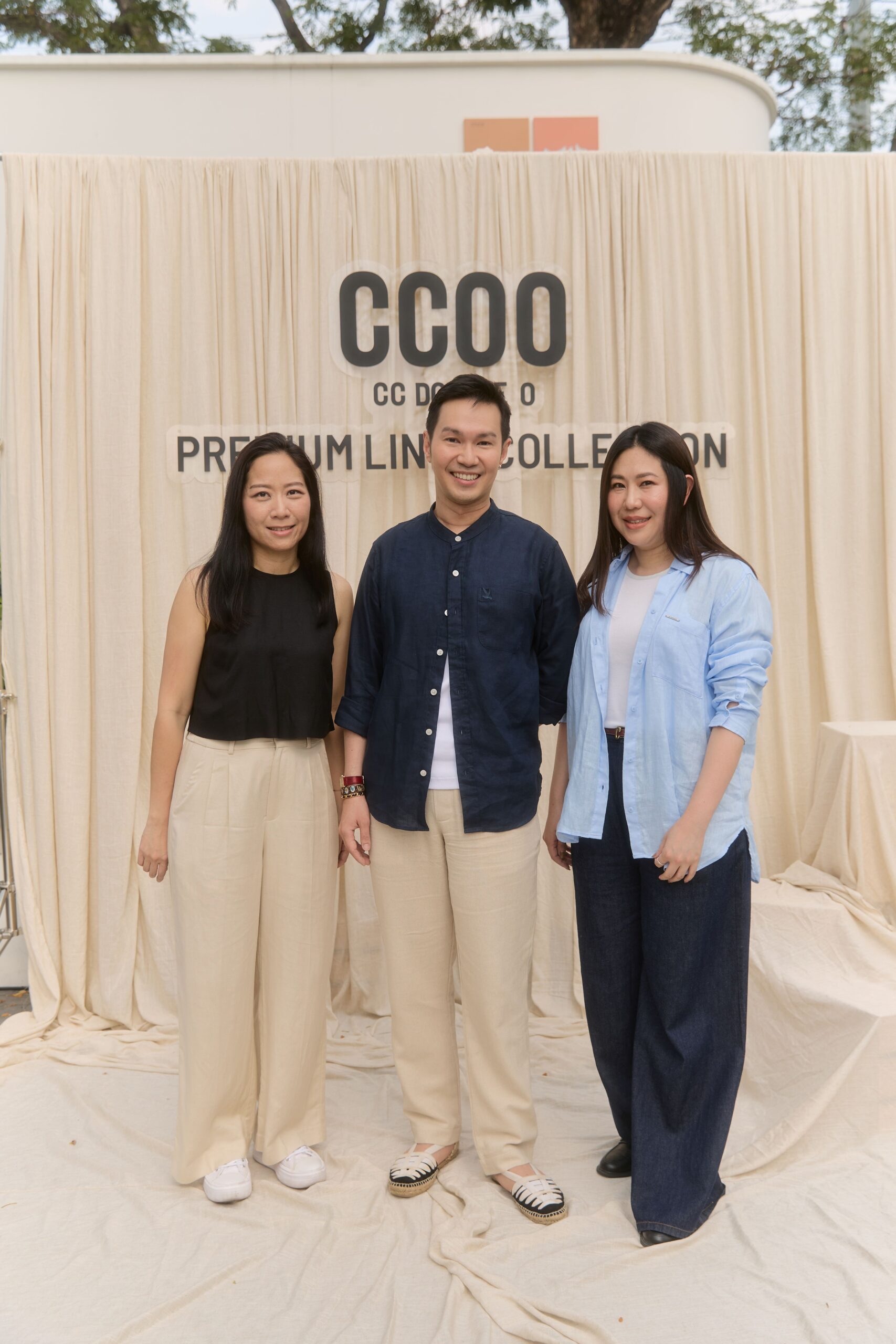 ภายในงานยังดื่มด่ำไปกับบรรยากาศเย็นสบาย และร่มเงาของแมกไม้ยามบ่าย ณ คาเฟ่ใจกลางเมือง ตกแต่งด้วยความมินิมอลของผ้าที่ถูกพาดแขวนผ่านต้นไม้ใหญ่ในธีมฤดูร้อน อบอวลไปด้วยเหล่าแฟชั่นอินฟลูเอนเซอร์ที่มาอวดโฉมโททัลลุคจาก CC DOUBLE O Premium LINEN Collection อาทิ หนุ่มหล่อมาดเข้มที่แฝงไปด้วยความทะเล้น เฟย – ภัทร เอกแสงกุล ที่มาในสไตล์ Effortless พร้อมด้วยแก็งค์เพื่อนสาวตัวแทนของผู้หญิงยุคใหม่ ก้อย – อรัชพร โภคินภากร สาวแกร่งที่เปี่ยมไปด้วยพลังความมั่นใจ นัตตี้ – นันทนัท ฐกัดกุล สาวอารมณ์ดี ที่พกความสนุกสนานมาพร้อมความสดใส และ ดรีม – อภิชญา พานิชตระกูล สาวหวานที่มีสไตล์เรียบง่ายแต่โดดเด่นด้วยเสน่ห์อันเป็นธรรมชาติ