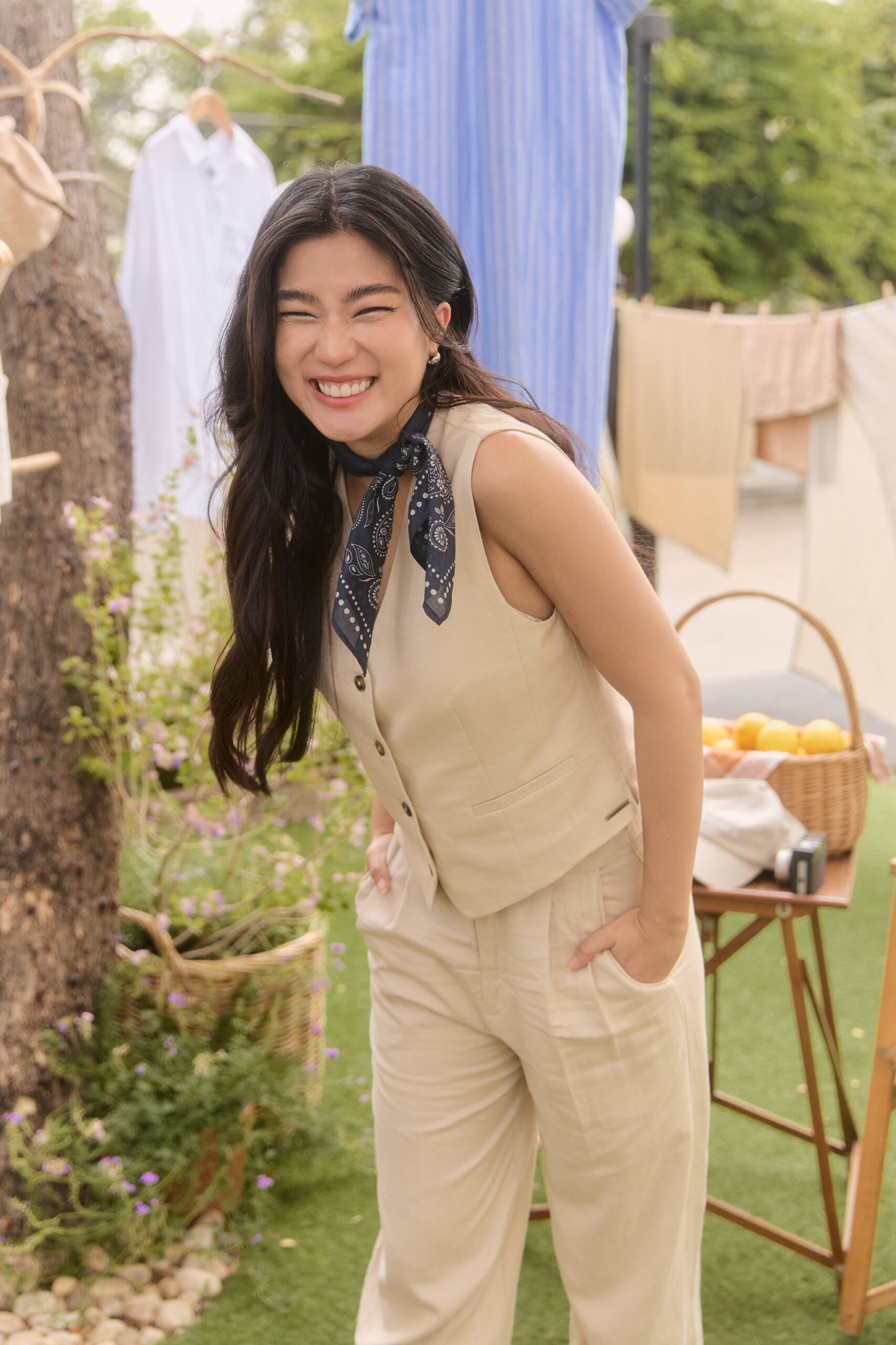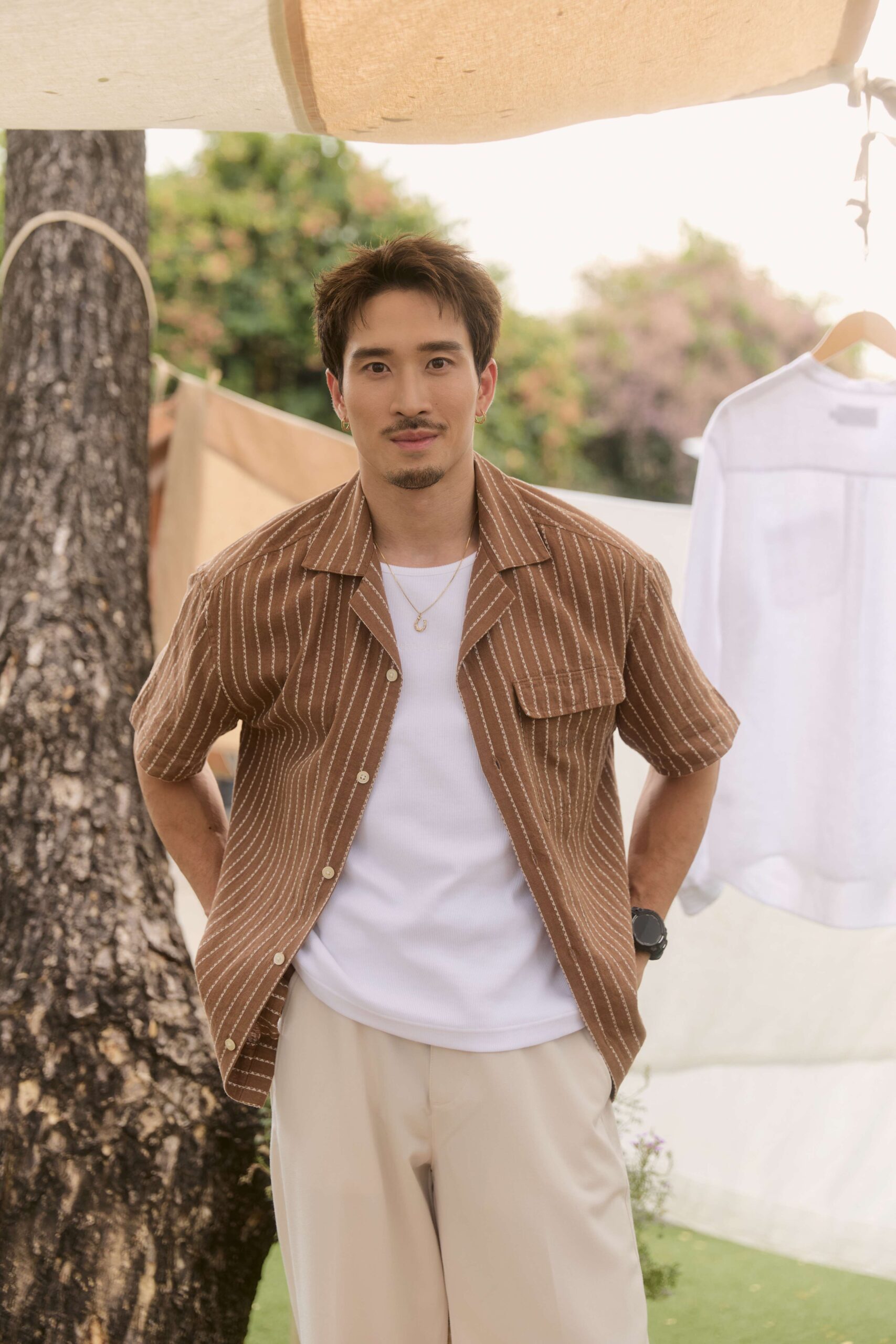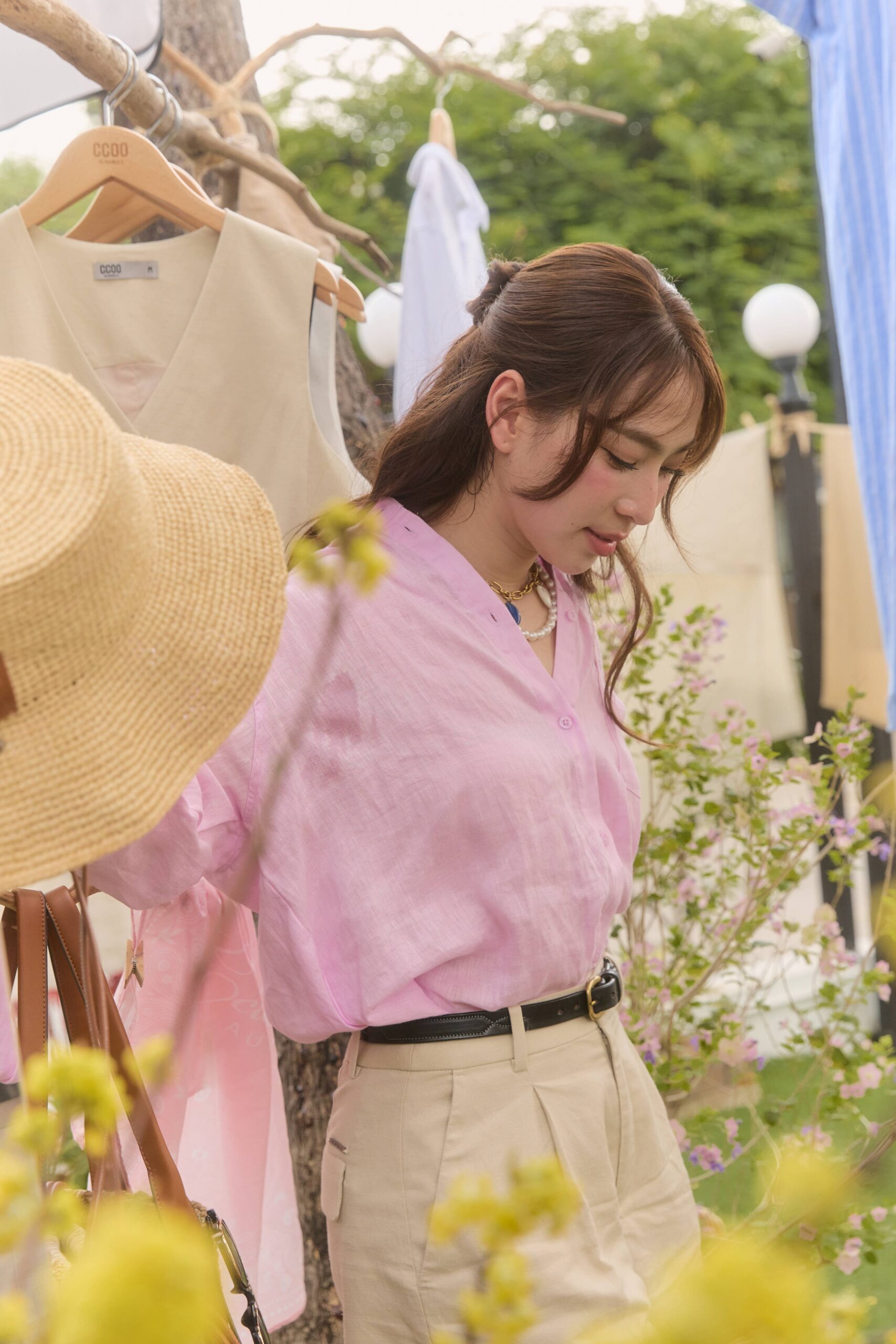 ภายในงานยังดื่มด่ำไปกับบรรยากาศเย็นสบาย และร่มเงาของแมกไม้ยามบ่าย ณ คาเฟ่ใจกลางเมือง ตกแต่งด้วยความมินิมอลของผ้าที่ถูกพาดแขวนผ่านต้นไม้ใหญ่ในธีมฤดูร้อน อบอวลไปด้วยเหล่าแฟชั่นอินฟลูเอนเซอร์ที่มาอวดโฉมโททัลลุคจาก CC DOUBLE O Premium LINEN Collection อาทิ หนุ่มหล่อมาดเข้มที่แฝงไปด้วยความทะเล้น เฟย – ภัทร เอกแสงกุล ที่มาในสไตล์ Effortless พร้อมด้วยแก็งค์เพื่อนสาวตัวแทนของผู้หญิงยุคใหม่ ก้อย – อรัชพร โภคินภากร สาวแกร่งที่เปี่ยมไปด้วยพลังความมั่นใจ นัตตี้ – นันทนัท ฐกัดกุล สาวอารมณ์ดี ที่พกความสนุกสนานมาพร้อมความสดใส และ ดรีม – อภิชญา พานิชตระกูล สาวหวานที่มีสไตล์เรียบง่ายแต่โดดเด่นด้วยเสน่ห์อันเป็นธรรมชาติ