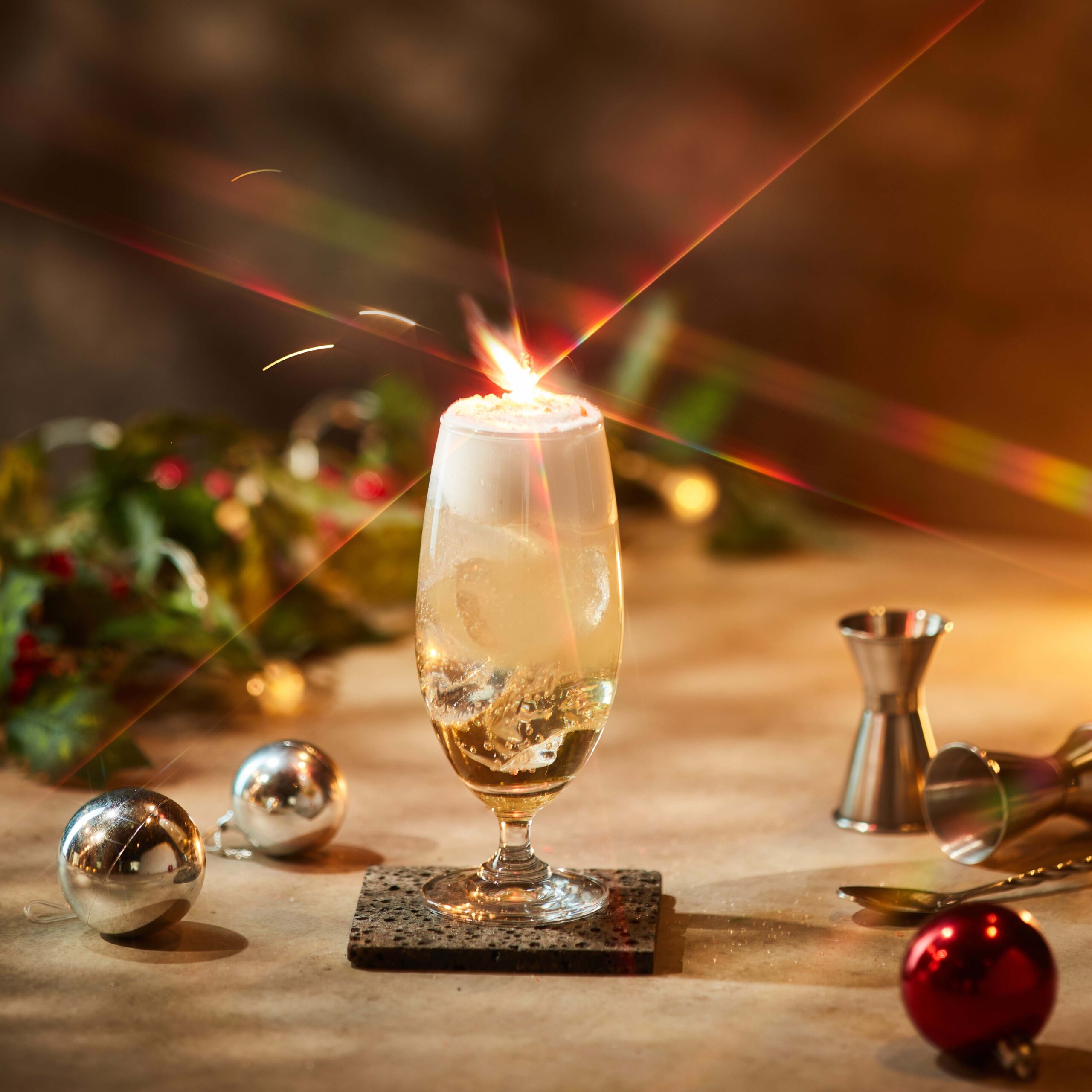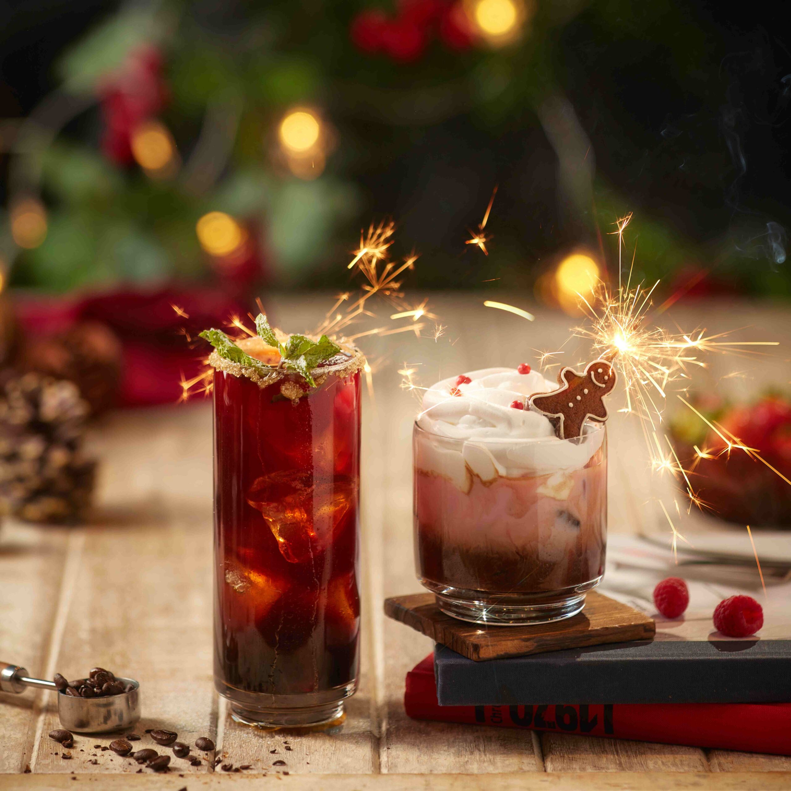 เริ่มกันที่เมนูกาแฟ (1) Holly Coffee ที่ออกแบบกาแฟเมนูนี้ให้เป็นสีแดงเหมือนผล Holly ซึ่งเป็นสัญลักษณ์สำคัญของเทศกาลคริสต์มาส ตัวเครื่องดื่มจะเน้นรสชาติที่มีความสดใสและสดชื่นของน้ำผลไม้ แต่ยังเก็บความอบอุ่นด้วยไซรัปขิง โรยด้วยไอซิ่งด้านบนเปรียบเสมือนหิมะตก (2) Berry Merry เครื่องดื่มผลไม้ตระกูลเบอร์รี่ ซึ่งเป็นผลไม้ที่นิยมนำมาทำเป็นเครื่องดื่มในเทศกาลคริสต์มาส และเลือกกาแฟคั่วกลางมาผสมกับราสเบอร์รี่ไซรัปและผงโกโก้โรยเป็นเบส แล้วนำมาราดบนนมสตรอวเบอร์รี ท้อปปิ้งด้วยวิปครีม เพิ่มความรู้สึกนุ่มนวลแบบซ่อนเปรี้ยว พร้อมตกแต่งด้วยคุกกี้ Ginger Bread ที่เป็นสัญลักษณ์ของเทศกาลคริสต์มาส (3) Like A Firework ที่ได้รับแรงบันดาลใจมาจาก Butterbeer นำมาพัฒนาต่อให้เป็นแบบฉบับของ C.P.S. COFFEE โดยจะมีความหอมหวานบวกครีมนุ่มๆ ที่กำลังพอดี เพิ่มลูกเล่นโดยใส่ Pop Rocks Candy ลงไป เวลาดื่มจะรู้สึกถึงพลุ มีความเป๊าะแป๊ะในปาก เพิ่มความสนุกสนานในการดื่ม นอกจากนี้ยังใส่กริตเตอร์ลงไปเพิ่มความเปล่งประกายให้กับความสุขของเทศกาลอันรื่นเริงที่กำลังจะถึงนี้