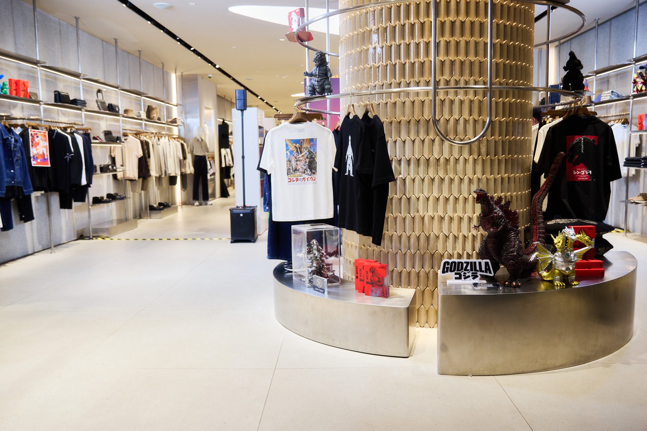 แฟชั่นที่เหล่าสาวก GODZILLA ห้ามพลาด! ทั้ง 15 ไอเทม อาทิ เสื้อยืดพิมพ์ลายโปสเตอร์ 5 ภาค ได้แก่ Godzilla vs Ghigan (1972), Godzilla vs Mechagodzilla (1974), Godzilla vs King Ghidorah (1991), Godzilla vs Mothra (1992) และ Godzilla vs SpaceGodzilla (1994) และ เสื้อยืดพิมพ์หลายคาแรกเตอร์ก๊อตซิลล่าแบบเต็มตัว ที่มีไว้ครอบครองก็เหมือนได้สะสมงานอาร์ต หรือจะเป็น เสื้อเชิ้ตแขนสั้น ทั้งแบบพิมพ์ลายก็อตซิลล่าเต็มตัวและโมโนแกรม แจ็ตเก็ตยีนส์และกางเกงยีนส์ รวมถึงแอคเซสเซอรี่ อาทิ หมวกปักลาย ゴジラ ถุงเท้า พวงกุญแจ และหมอน