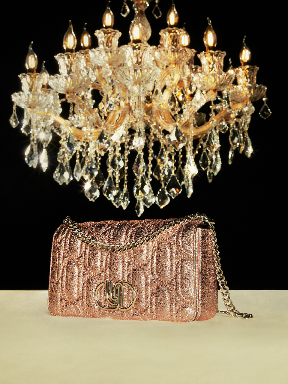 เริ่มจากรุ่น Moon Party กระเป๋าพับหน้าทรงสี่เหลี่ยมคลาสสิกพร้อมสายโซ่เส้นบางที่เน้นความคล่องตัว แบ่งออกเป็นแบบหนังบุลายในฟินิชกากเพชรที่นุ่มสบายมือ จับคู่กับสีของฮาร์ดแวร์ที่รับกันอย่างสีดำ-สีทอง, สีชมพู-สีเงิน และสีแชมเปญ-สีดำรมควัน และแบบหนังเรียบที่มาพร้อมกับฮาร์ดแวร์ฝังคริสตัล ออกมาเป็นไอเทมชิ้นโปรดที่จะยกระดับปาร์ตี้ของสาวๆ ให้ดูหรูหรายิ่งขึ้น