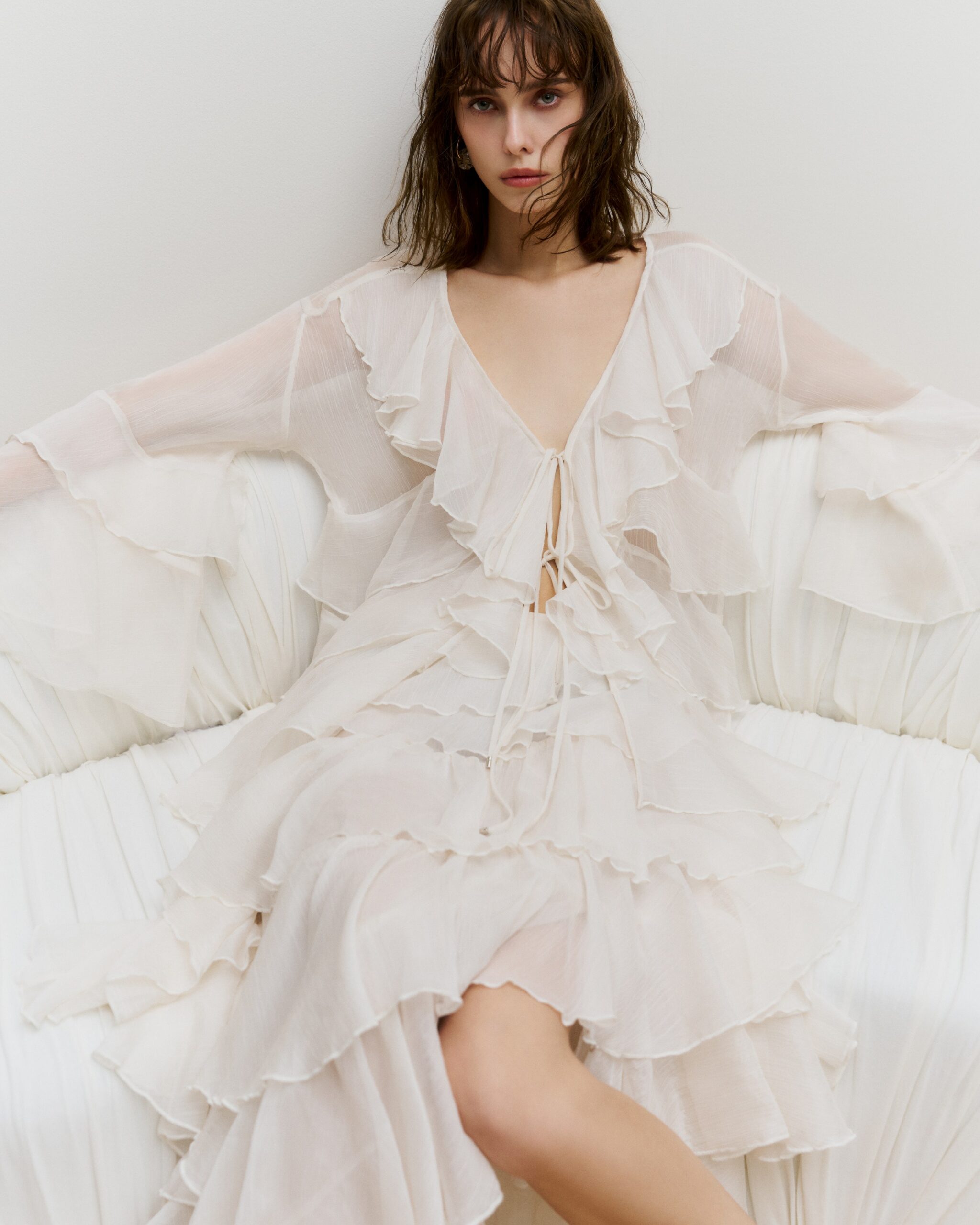 ครีเอทลุคสุดแกลมไปกับคอลเลกชั่น Ruby ประจำฤดูกาลสปริง 2025 ที่พิเศษด้วยเทคนิคการผลิตสุดประณีตถักทอเข้ากับรูปแบบการดีไซน์หรูหรา โดยได้แรงบันดาลใจจากตัวตนของผู้หญิงที่ผู้หลงใหลในความเรียบง่ายมินิมอล แต่เปี่ยมด้วยอุดมการณ์ความคิดแบบสาวยุคใหม่ คีย์สำคัญของรูปแบบเสื้อผ้าจากคอลเลกชั่นล่าสุดนำเสนอเสื้อผ้าที่มีความหรูหราเต็มไปด้วยดีเทลอันละเมียดละไม ในขณะเดียวกันก็ให้ความมีชีวิตชีวาและบ่งบอกถึงความไม่ยึดติดกับกฏเกณฑ์ข้อกำหนด จับคู่กับเทคนิคคัทติ้งที่มีความเฉพาะตัว อาทิ การจับเดรปย่น แต่งระบายต่อชั้น ช่วงสร้างมิติอันลุ่มลึกให้กับชิ้นเสื้อผ้า มาในแพนโทนสีสันแอลิแกนซ์สุดคลาสสิค ออกมาให้เลือกสรรอย่างหลากหลาย ไม่ว่าจะเป็นเดรสกระโปรงยาวสีฮอตพิงค์ แต่งรัฟเฟิลระบาย เดรสผ้าซาตินสีทองตกแต่งดอกกุหลาบขมวดปม เดรสกระโปรงสั้นผ้าลูกไม้สีฟ้าอ่อน เดรสคอวีแต่งระบายต่อชั้นสีขาว ไปจนถึงเดรสแขนยาวผ้าลูกไม้สีดำและเดรสกระโปรงยาวสีดำปาดไหล่ที่หยิบมาสไตล์ลิ่งได้หลากหลายลุค ไม่ว่าจะแมทช์เข้ากับแจ็คเก็ตโอเวอร์ไซส์สำหรับลุคฟอร์มอลวันทำงาน หรือจับคู่กับกระเป๋าคลัทช์และต่างหูคู่ใจสักคู่สำหรับลุคแกลมสุดพิเศษ