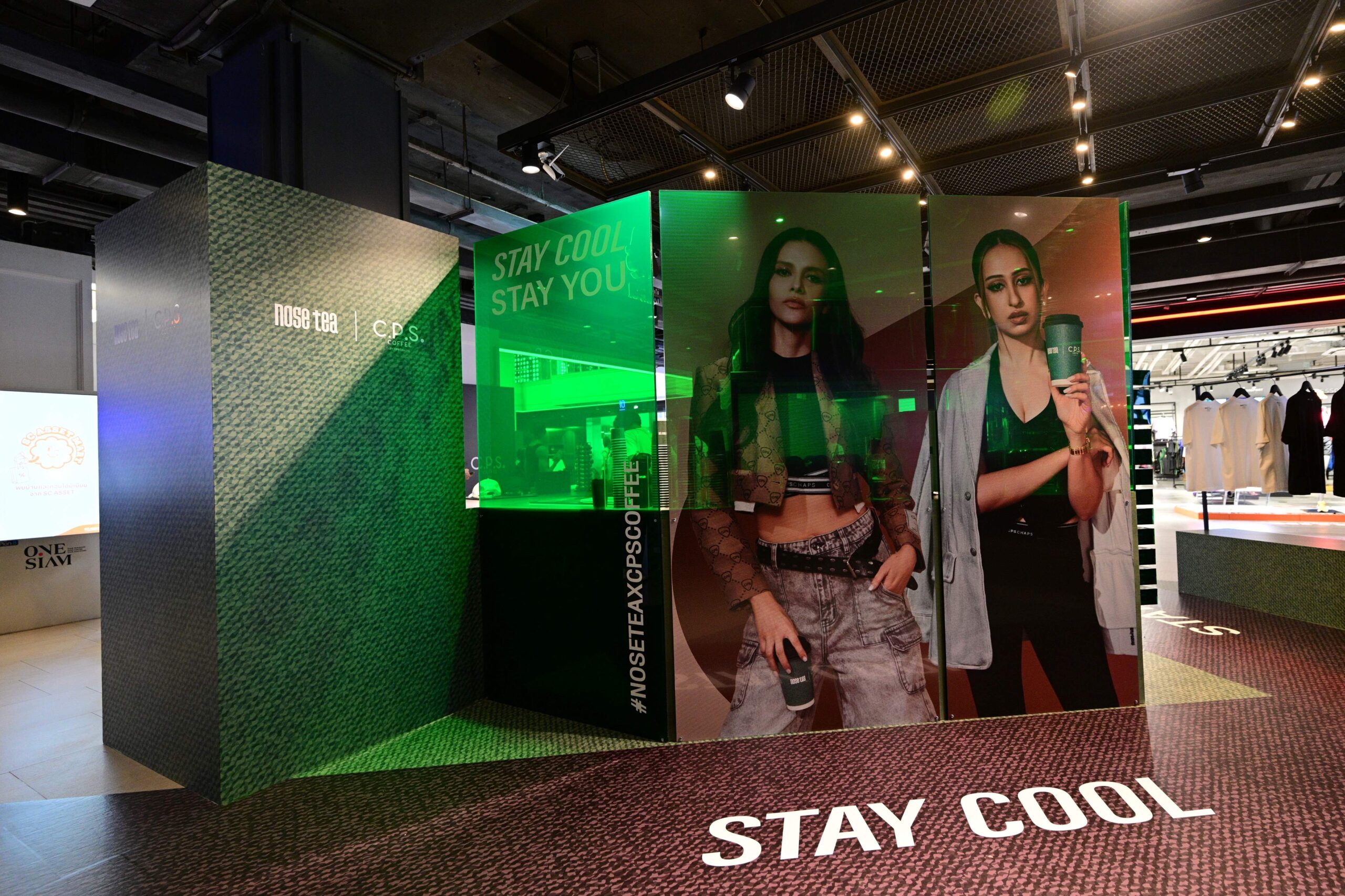 ภายในงานเปิดตัวคอลลาบอเรชั่น Nose Tea | C.P.S. COFFEE เมื่อเร็วนี้ๆ ได้มีการเนรมิตลานจัดกิจกรรมเป็นโซนเมืองจำลองคอนเซปต์ Stay Cool, Stay You ที่ชั้น G โซนเอเทรี่ยม 2 สยามเซ็นเตอร์ เพื่อสร้างบรรยากาศที่สนุกสนาน เต็มไปด้วยสีสัน และมีจุดถ่ายภาพที่โดดเด่น เปิดโอกาสให้ผู้ร่วมงานแสดงความเป็นตัวเองผ่านสามคาแรคเตอร์ของเบลนด์กาแฟบนโซเชียลมีเดียของตัวเองได้อีกด้วย โดยจุดถ่ายภาพจะถูกแบ่งออกเป็น 3 โซน ที่สื่อถึงกาแฟทั้งหมด 3 คั่ว ผสานกับความเป็นแฟชั่น คือ โซน Light Blend Chic โซนนี้ถูกจำลองเป็นม้านั่งในสวนหย่อมเล็กๆ เปรียบเสมือนวันพักผ่อนสบายๆ ให้ความรู้สึกของการดื่ม Coffee Milk Tea รสชาติเบาๆ เหมาะกับวันชิลๆ ที่ให้บรรยากาศสบายและสดชื่น Medium Blend Street โซนนี้จำลองผนังกราฟฟิตี้แนวสตรีทอาร์ตที่เต็มไปด้วยความคูลและเท่ เปรียบเสมือน Coffee Milk Tea ที่มีความเข้มระดับกลางกำลังพอดี สร้างบรรยากาศของความเป็นกันเอง เท่และทันสมัย และโซนสุดท้าย คือ Black Blend Glam โซนจำลองคาเฟ่หรูหรา โดดเด่น เน้นความลักชัวรี เปรียบเสมือน Coffee Milk Tea ความเข้มข้นสูง ที่มอบประสบการณ์ที่เปี่ยมไปด้วยความโดดเด่นอันน่าประทับใจ มาพร้อมกับป็อปอัพสโตร์ที่สรรสร้างขึ้นมาเพื่อการเปิดตัวคอลลาบอเรชั่นครั้งนี้โดยเฉพาะ อีกทั้งยังมีสินค้าลิขสิทธิ์จาก Nose Tea | C.P.S. COFFEE สุดพิเศษ ได้แก่ เสื้อยืดสีดำ สีขาว ราคา 690 บาท และหมวกสีดำ   สีครีม ราคา 490 บาท วางจำหน่ายที่ป็อปอัพสโตร์ และร้าน C.P.S. COFFEE ทุกสาขา (ยกเว้นสาขาเซ็นทรัลภูเก็ต)