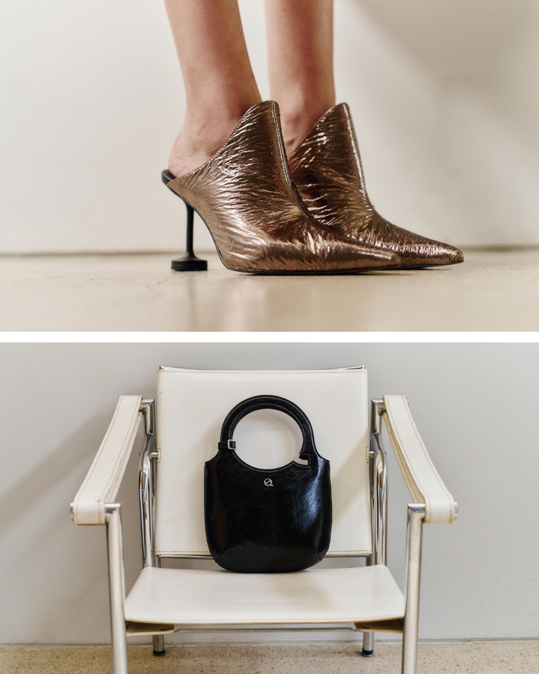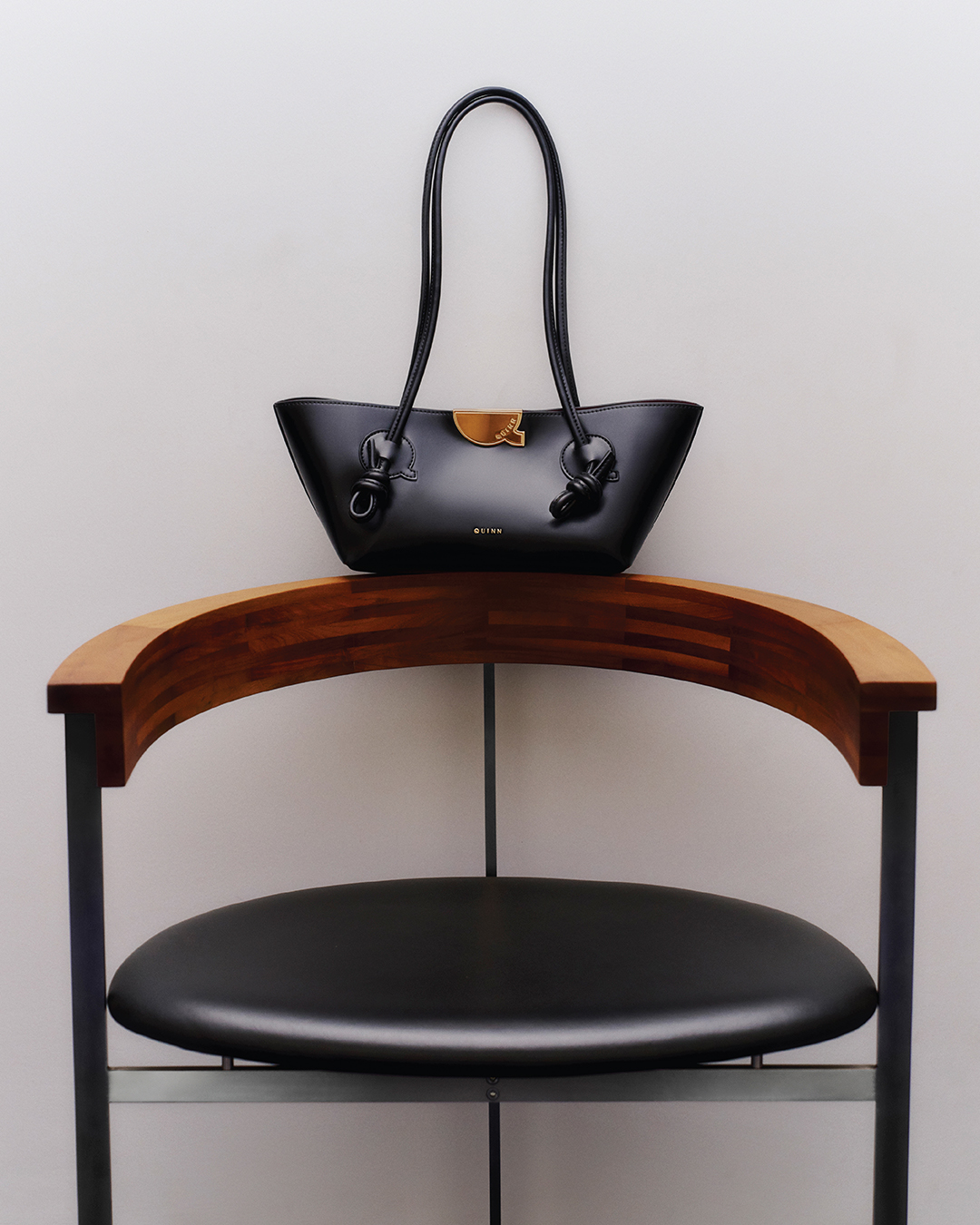 กับกระเป๋าคล้องแขนสไตล์มินิมอลที่ขับให้เห็นวัสดุหนังคุณภาพ มีกิมมิคจากการฉลุหูกระเป๋าเป็นรูปตัว Q และกระเป๋าสะพายใบจุในโทนสีเรียบโก้เป็นธรรมชาติที่มีไฮไลต์เป็นอะไหล่บัคเกิลตัว Q สุดเท่ รับกับวัสดุหนังนุ่มและคัตติ้งที่ประณีตเป็นเอกลักษณ์ ขาดไม่ได้ในการคอมพลีตลุคให้สมบูรณ์แบบกับรองเท้าส้นสูงเปิดส้นสีเมทัลลิคกับส้นรูปเข็มหมุดสุดโดดเด่น